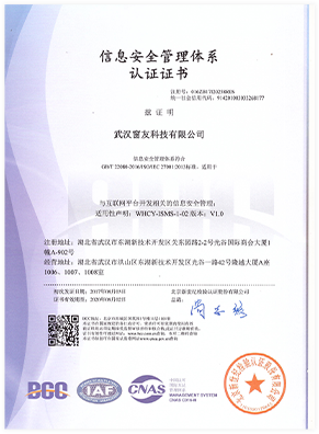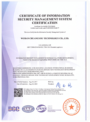 2017年8月,获得ISO27001信息安全管理体系 认证证书。