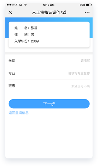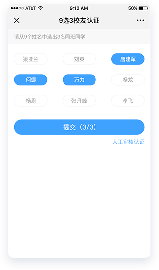 当所有认证方式都没有适合校友时,校友可以选择人工审核。